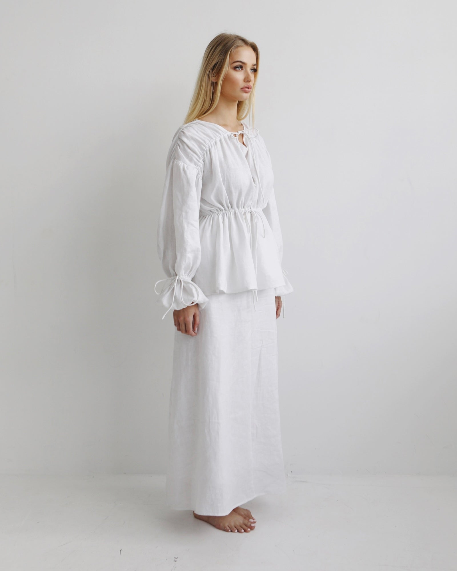 Crafted from 100% natural linen, the Alaiia Linen Top is a modest, timeless, and versatile wardrobe staple. Designed with trans-seasonal wear in mind, it is lightweight, breathable, and perfect for warmer weather.