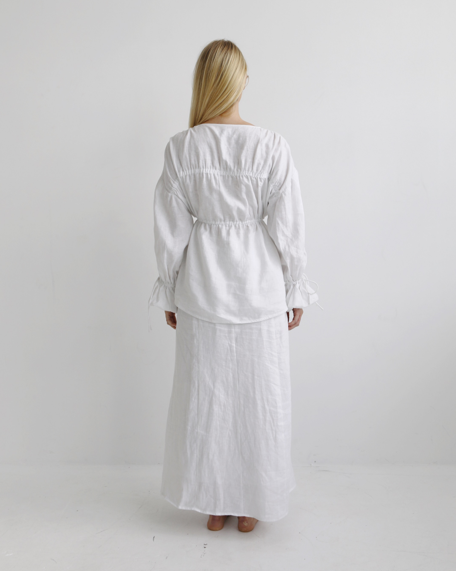 The top features adjustable drawstrings along the waist, sleeves, and neckline, allowing for a customisable fit that complements your personal style.