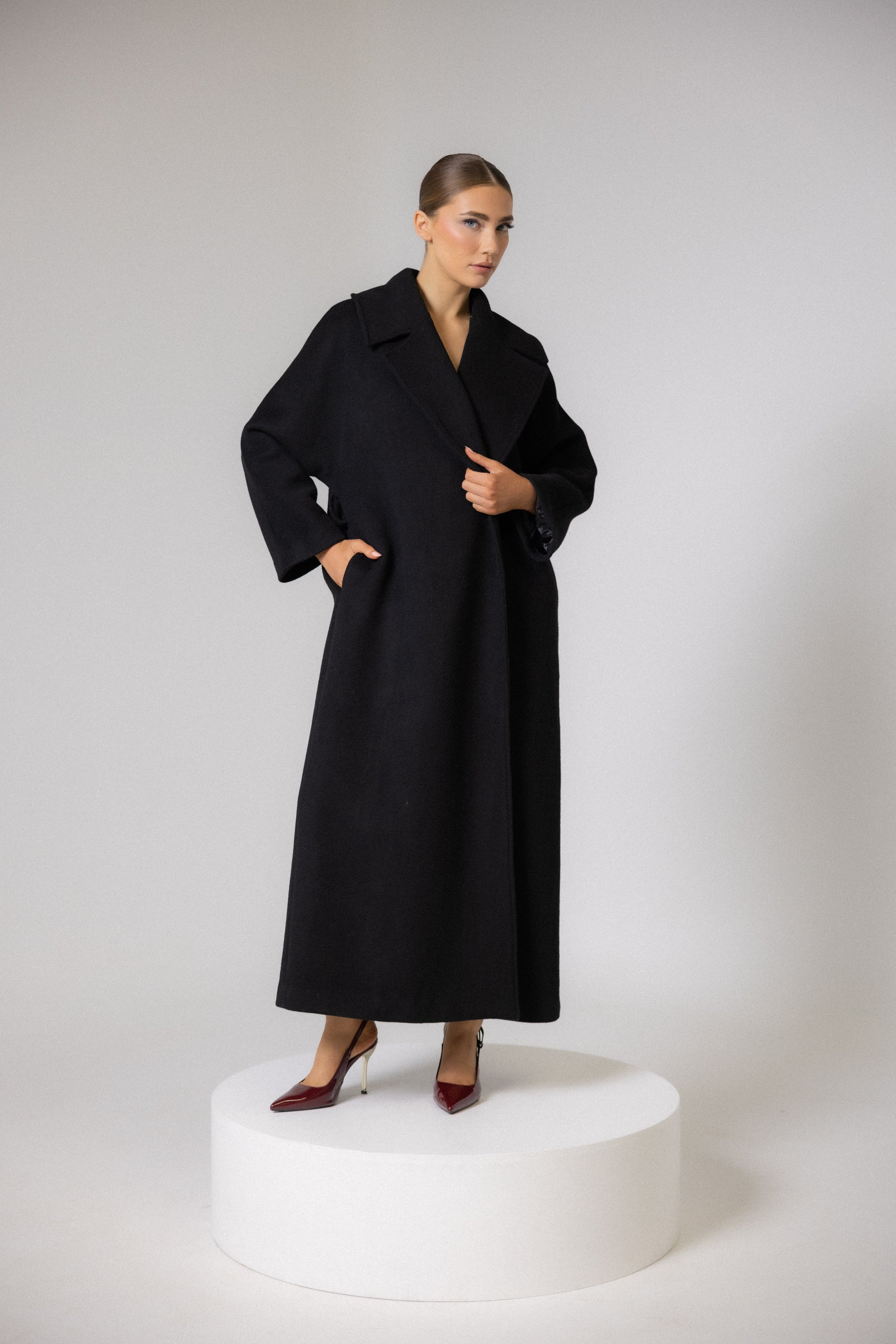 An effortlessly refined longline coat crafted from a warm 70% wool, 30% fiber blend. Nayla is cut with a relaxed yet structured silhouette, offering both elegance and ease for winter layering. Designed with functional side pockets, a detachable hood, and a matching belt to cinch the waist as desired. The coat’s versatility lies in its minimal lines and modular design—wear it hooded for a softer, cocooned feel or without for a clean, elevated edge. A timeless piece built for everyday sophistication.