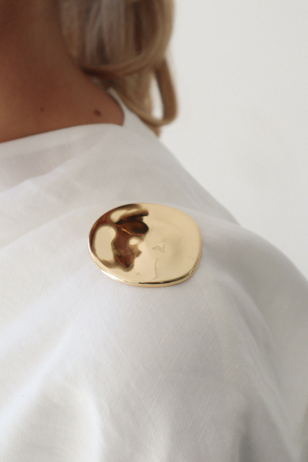 The Nura Gold Brooch is not just an accessory—it's a statement piece that embodies both grace and individuality. Adorn yourself with this captivating brooch and make a lasting impression.